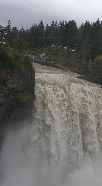 According to a City of Snoqualmie press release, the Snoqualmie River flow, as of Friday morning, October 3o, 2015 was flowing at 6,100 cubic feet per second(cfs). By 3PM it had risen to 11,500 cfs. The river is predicted to crest at approximately 25,000 cfs on October 31st.