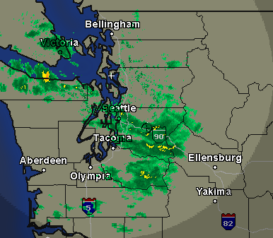 Current weather radar shows the convergence zone still aimed at the Snoqualmie Valley and stretching west toward Seattle. Temperatures were right around freezing and forecast to stay in the low 30’s overnight.
