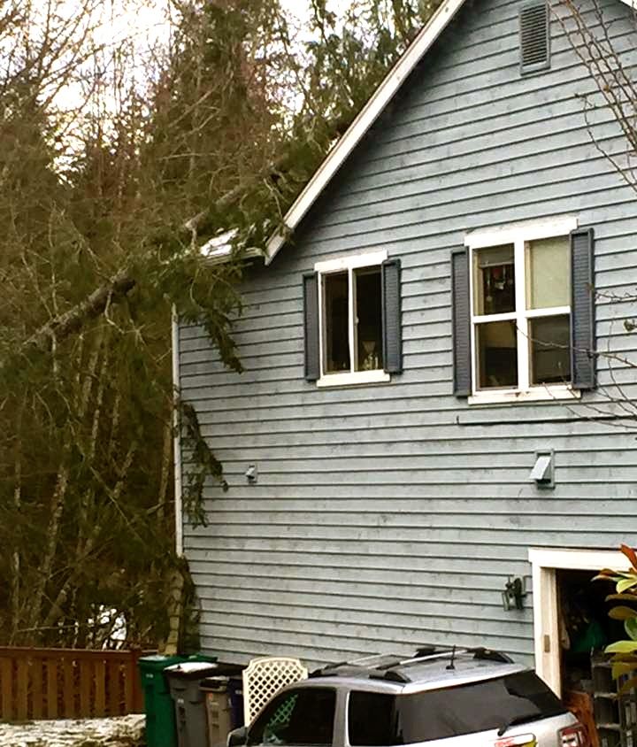 There’s been one report of a downed tree hitting a Snoqualmie Ridge home, with what appeared to be [hopefully] only minor damage. Construction site fences have also been blown down on the Ridge.