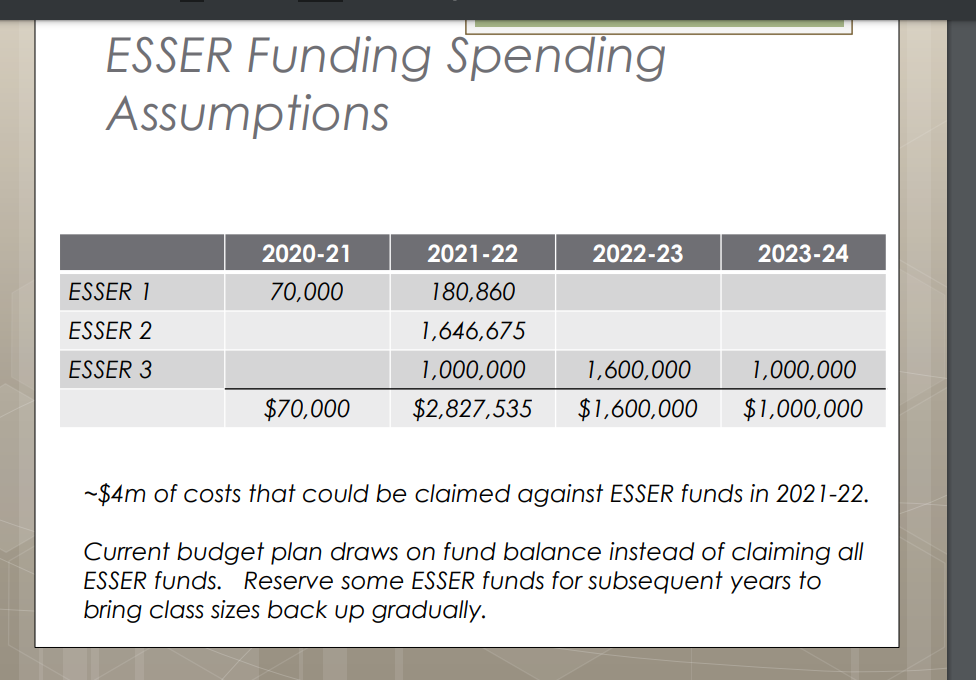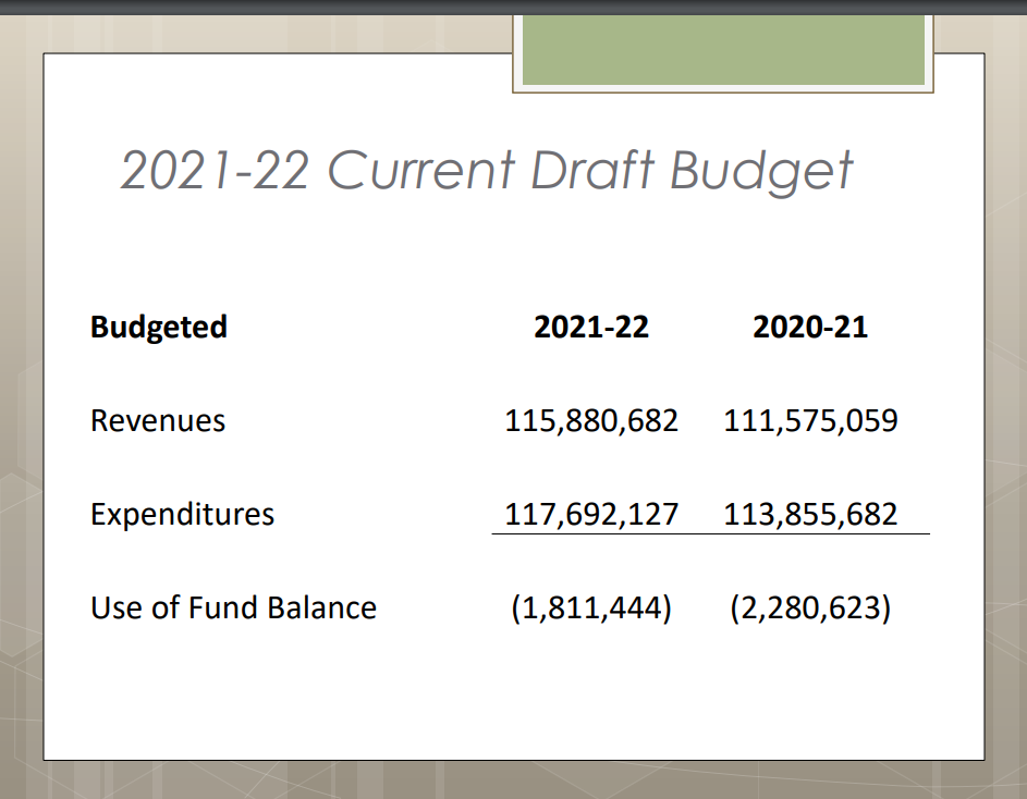 Discussion of 2021-22 Budget Priorities including reopening plans and addressing learning loss, sustaining recent initiatives including Instructional Coaches, Interventionists, AVID, World Language, K-3 Class Size, MSHS 7-period day, Middle school counselors. Continuing progress towards a balanced budget but accelerated class fee reductions. Collective Bargaining (PSE in progress, SVAPA Ratified), Curriculum adoptions, Social/Emotional/ Behavioral supports and Professional development.