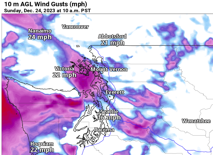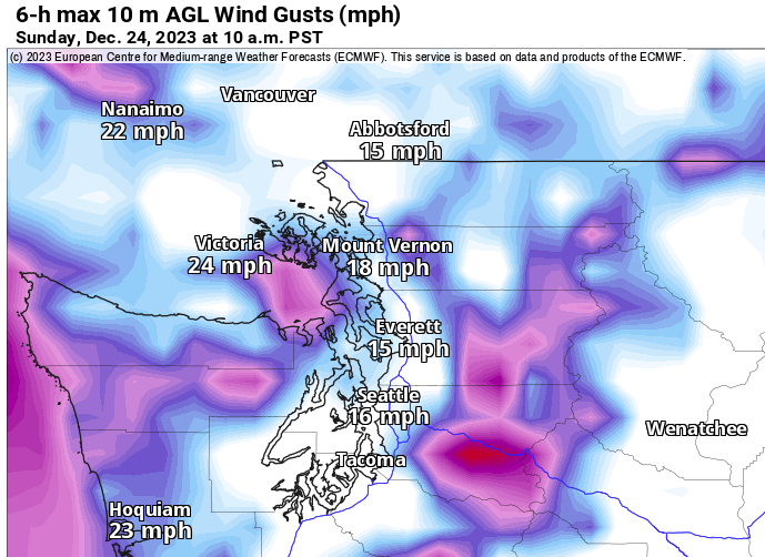 Christmas Eve, Eve the Snoqualmie Valley will have some easterly winds picking up later tonight and lasting into Christmas Eve day.