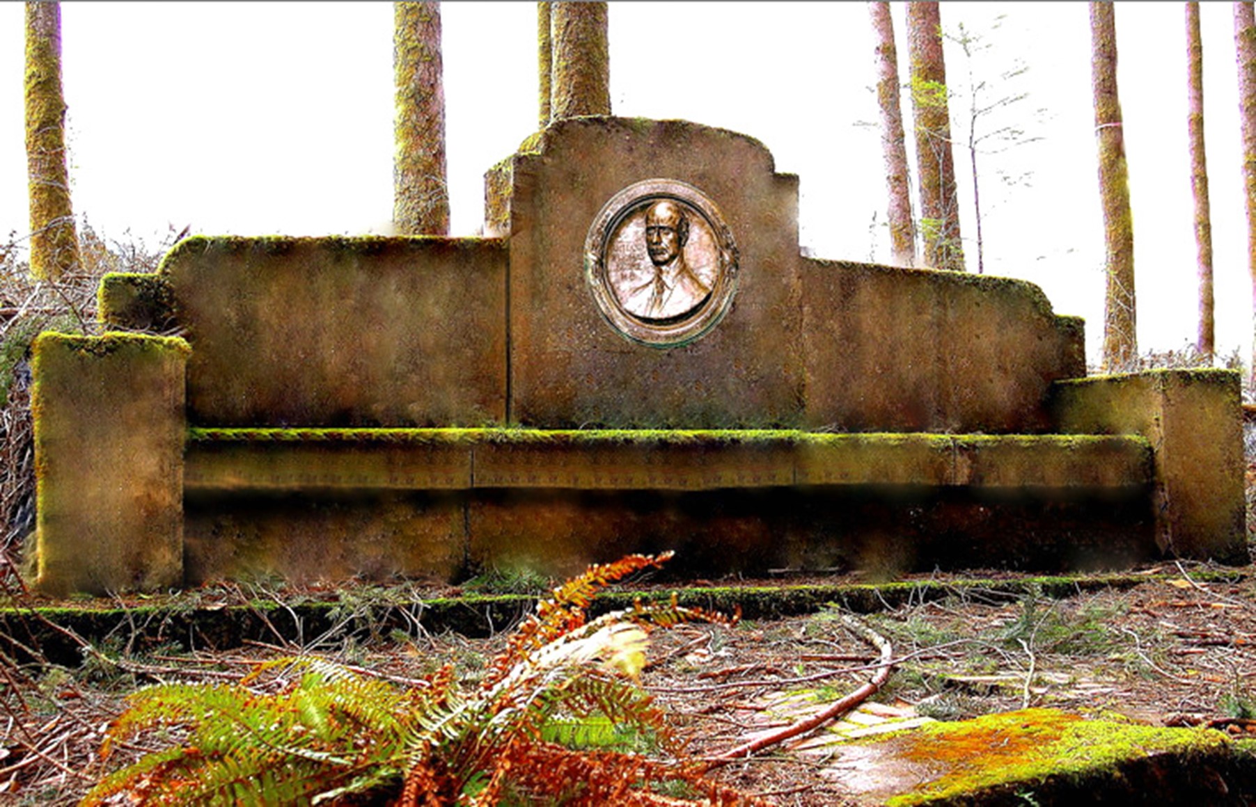 I immediately took a photo of the brass and, over time, shared it on the internet. Then I received an email from someone who had the presence of mind to match the moss-covered concrete with the newly photographed bronze using photoshop – which you see below.