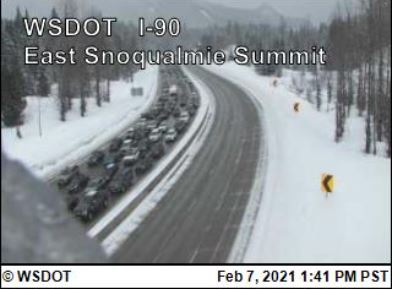 Eastbound and westbound I-90 are closed due to spinouts. EB is closed 5 miles west of the summit and WB is closed at Easton (MP 71).