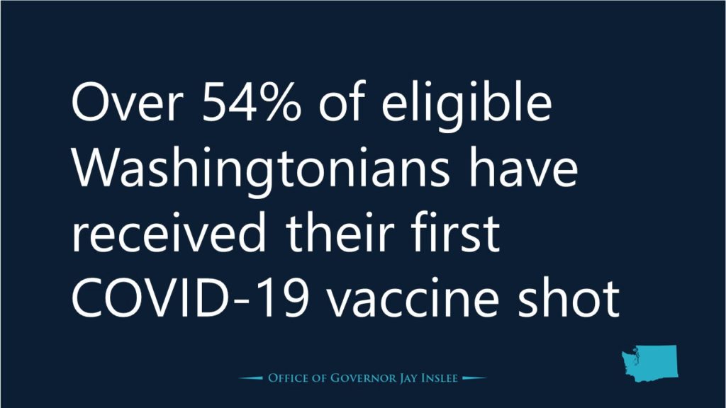 “We are at the intersection of progress and failure, and we cannot veer from the path of progress,” Inslee said Tuesday. “Our economy is beginning to show early signs of growth thanks to some of our great legislative victories and we know vaccines are the ticket to further reopening — if we adhere to public health until enough people are vaccinated.”