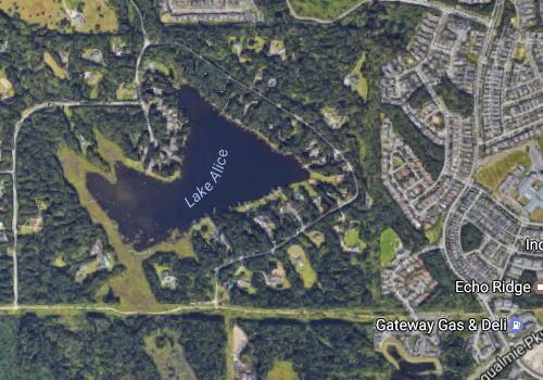 The Lake Alice community consists of about 200 homes in a densely wooded area that is served by a single road. The neighborhood is bordered by the much larger Snoqualmie Ridge community, as well as state-owned forestlands and other open space with dense vegetation.