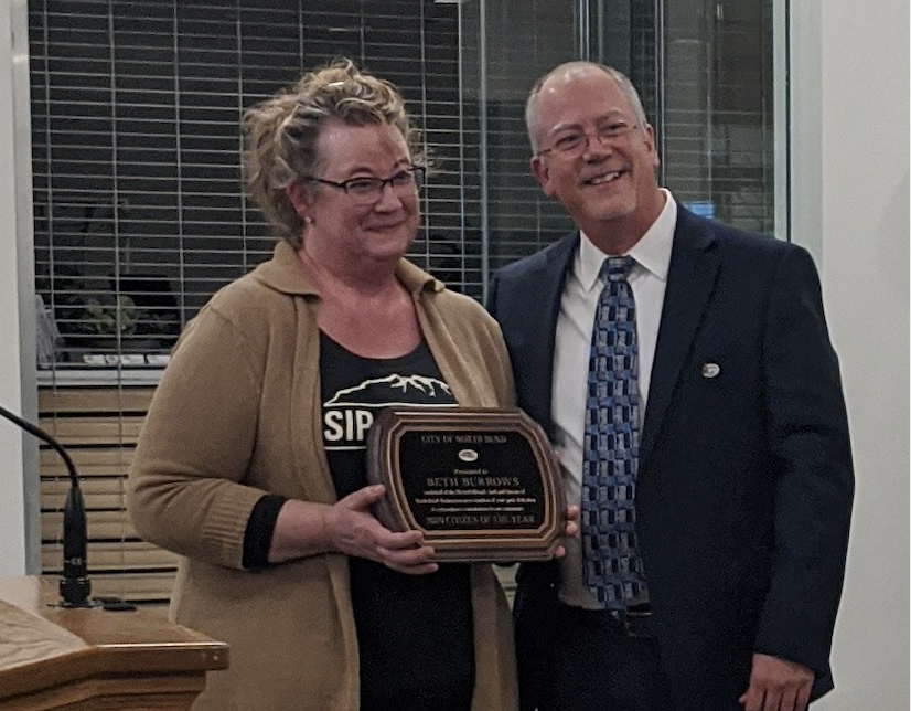 “Beth is an incredible human, and a vital powerhouse helping who continually advocates for our residents and businesses, making North Bend an even better place to live and work. Beth has lived in our community for over 30 years, raising two great kids here, has been involved with the PTA, schools, and saving historic buildings along the way. She is also the owner of the North Bend Theatre, bringing movies, films, film festivals, music, gaming, comedy, and more to our community. AND, she is the founder of North Bend Art and Industry. She is a constant source of advocacy for residents and businesses in North Bend. Please join us in congratulating her on being Citizen of the Year.”