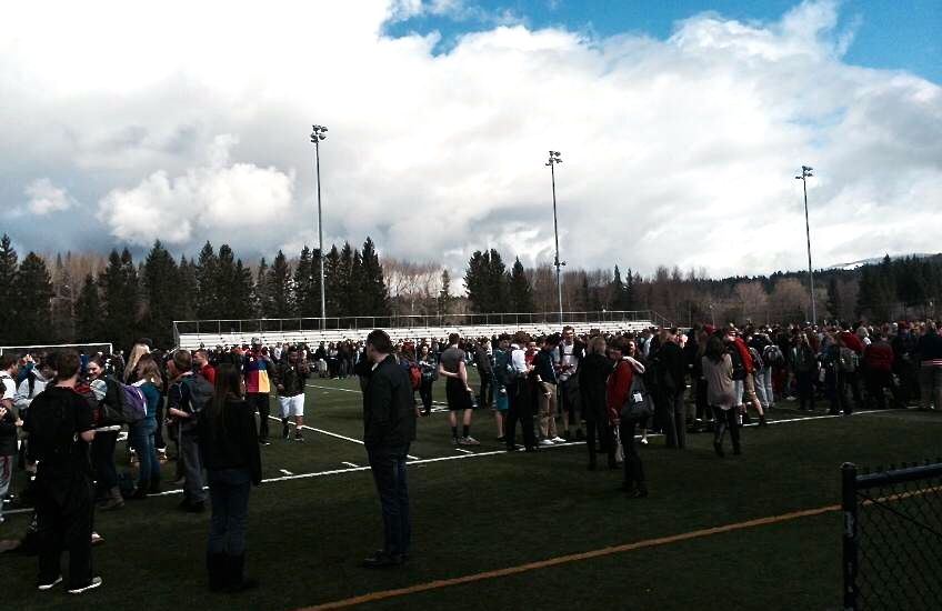 All Mount Si High School main campus students evacuated to stadium field during fire on 3/20/14.
