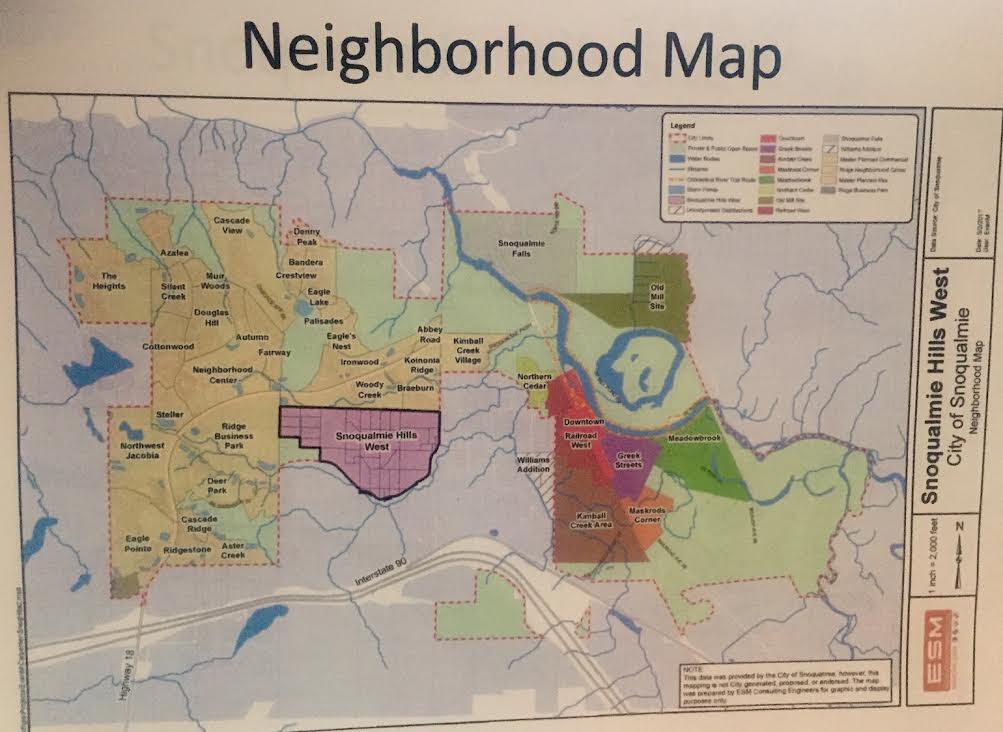 Neighborhood map shows the location of the Snoqualmie Hills annexation area located in Snoqualmie’s Urban Growth area.