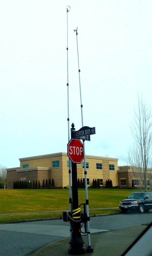 Well, it’s not ‘big brother’ folks… even as space-like as those antennae appear. It’s just a simple – and temporary – traffic survey the Snoqualmie Valley School District is conducting. The antennae, located at intersections near Cascade View Elementary School, will be removed in approximately one week.