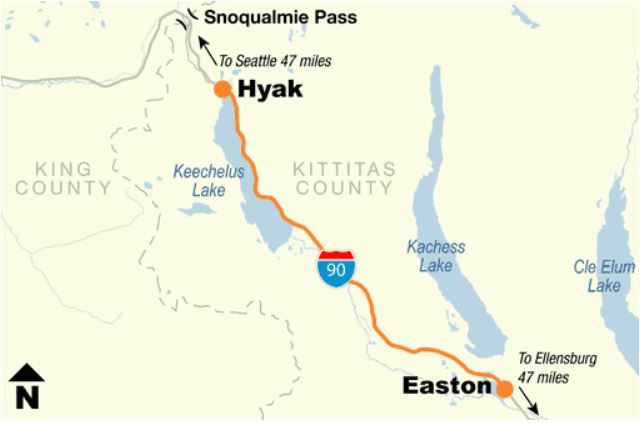 For the safety of the traveling public, crews will temporarily close the eastbound lanes near Cabin Creek, milepost 64 and the westbound lanes near Easton, milepost 70 at 7:30 p.m.