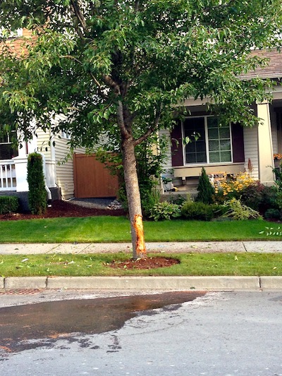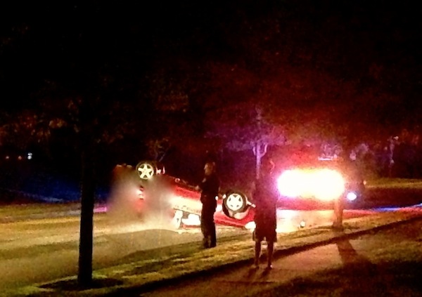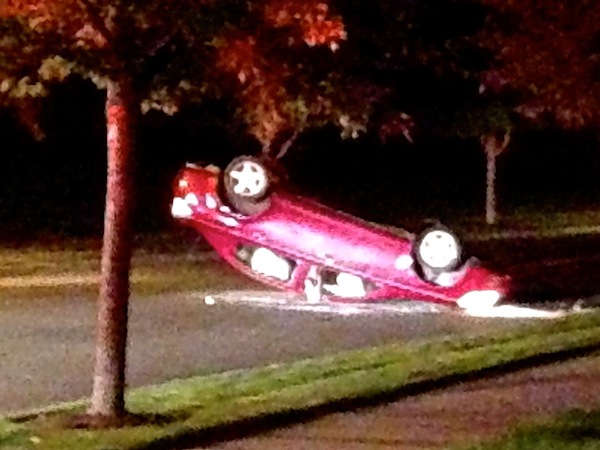 Residents of SE Swenson Street in the Deer Park neighborhood of Snoqualmie Ridge were awakened in the wee hours of Saturday morning, September 21, 2013, to the ominous sound of a “loud smash” and then “metal scraping” pavement and found a small sedan upside down in the middle of their residential road, near Swenson Park.