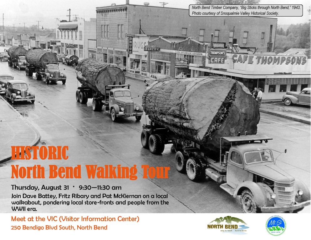 The City of North Bend is inviting community members to come experience the history of North Bend during a downtown walking tour from 9:30 to 11:30AM, Thursday, Aug. 31st. The tour starts at the North Bend Visitor Information Center at 250 Bendigo Blvd. South.