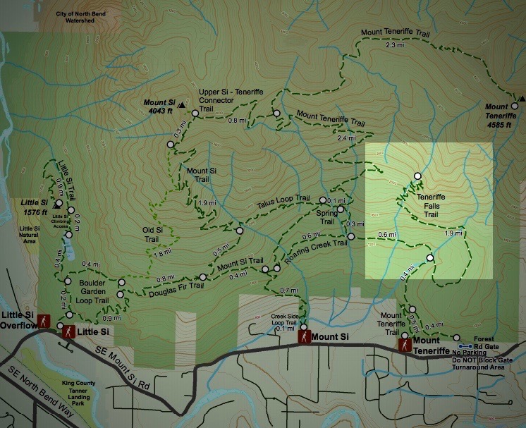 A new trail with access to Teneriffe Falls was added by Washington State Department of Natural Resources (DNR) last year. According to the Washington Trail Association, the Teneriffe Falls trail has loose rock in places and some steep drop-offs.