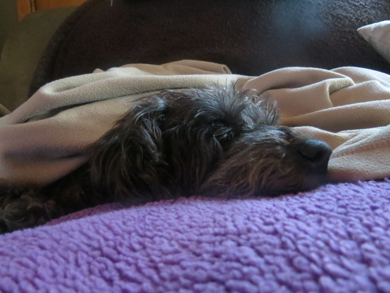 After unsuccessfully trying to treat what was wrong with her for about a week and a half, I sat down with her and assessed those three things. I realized my formerly jubilant dog was just gone. She hadn’t eaten for a week and slept all the time. She was just…tired.