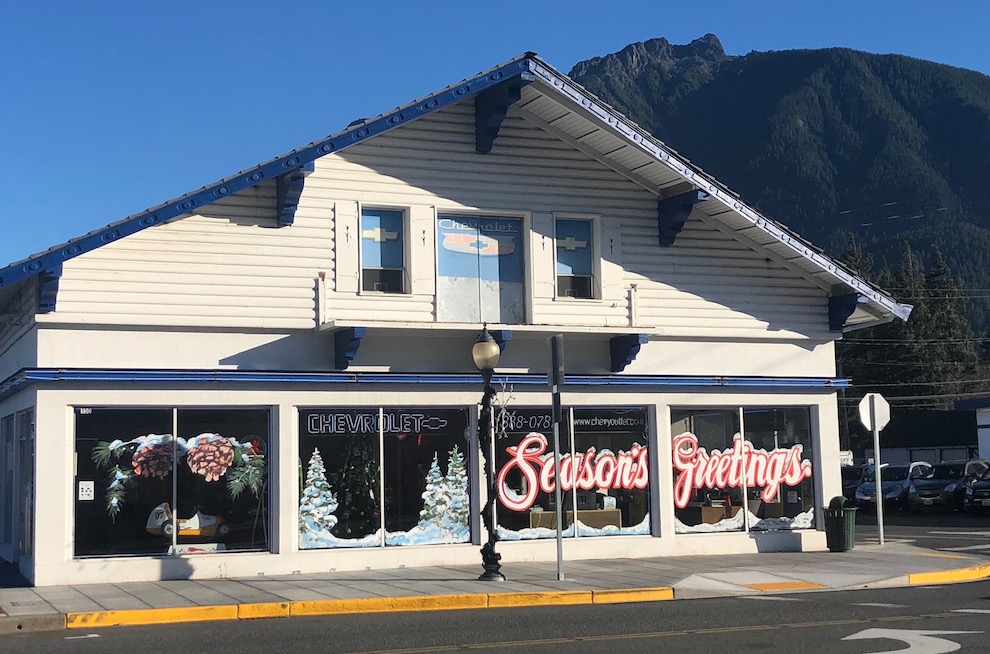 There has been some holiday decorating, though. Many businesses in the area are looking festive – especially the North Bend Chevy windows. The city has wrapped street lamps – and the familiar snowflakes have been attached, but there are about 4-8 street lights on arterials that have been out for several weeks. Rigos said the city is also waiting for PSE to repair those lights, although some have been fixed over the past few days.