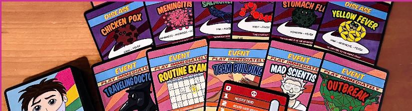 After things started reopening, the family surveyed friends and early game testers and decided to finish the game. Laughter is the best medicine, and although the theme of Symptomatic can be considered inherently dark, it’s lightened with puns or jokes on every card and a bright and goofy comic book style.
