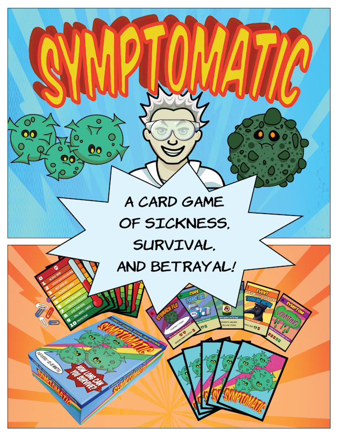 Symptomatic, like real life, requires critical thinking, strategy, and a bit of luck to stay healthy while everyone else suffers. Featuring plenty of brightly colored original art and goofy puns, Symptomatic is the mix of disease, decisions, and dad jokes you never knew you needed.