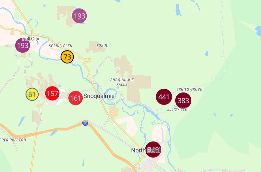 Smoke: Mixed smoke with fog in the early mornings and late nights as the inversion sets in. Air quality is unhealthy for sensitive groups from Bellingham to Seattle, with the heaviest impacts in the Darrington area.  A smoke column may be visible from both the I-90 and I-405 highway corridors.