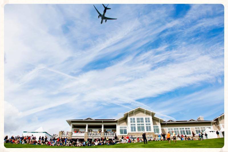 So here’s you warning… Friday, August 26, 2016 at 11:20AM a large Boeing jet will fly LOW (usually around 1,000 feet)  over Snoqualmie. This year a Korean Air 747-8 will fly over the 18th Fairway above the TPC Snoqualmie Ridge Clubhouse.