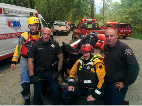 According to the King County Sheriff’s Office (KCSO) and Eastside Firefighters Twitter feeds, deputies, K-9 units and firefighters responded to the Snoqualmie River on Sunday, May 8, 2016 around 4PM after a 24-year old man jumped into the river in an attempt to avoid being arrested.