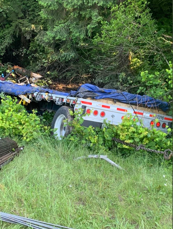 Just before 2am a semi went off the roadway Westbound I-90 near MP 43. The vehicle left the road to the right coming to rest approximately 100 feet in the ditch and trees.