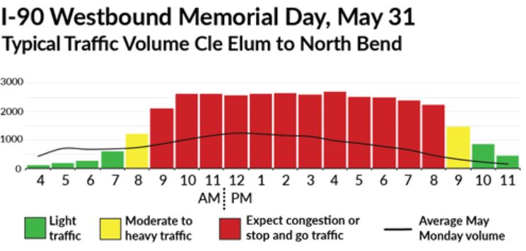 Except for the normal small back up on the off-ramp from I90 to SR18, traffic seems to be moving well in the valley this sunny Memorial Day.