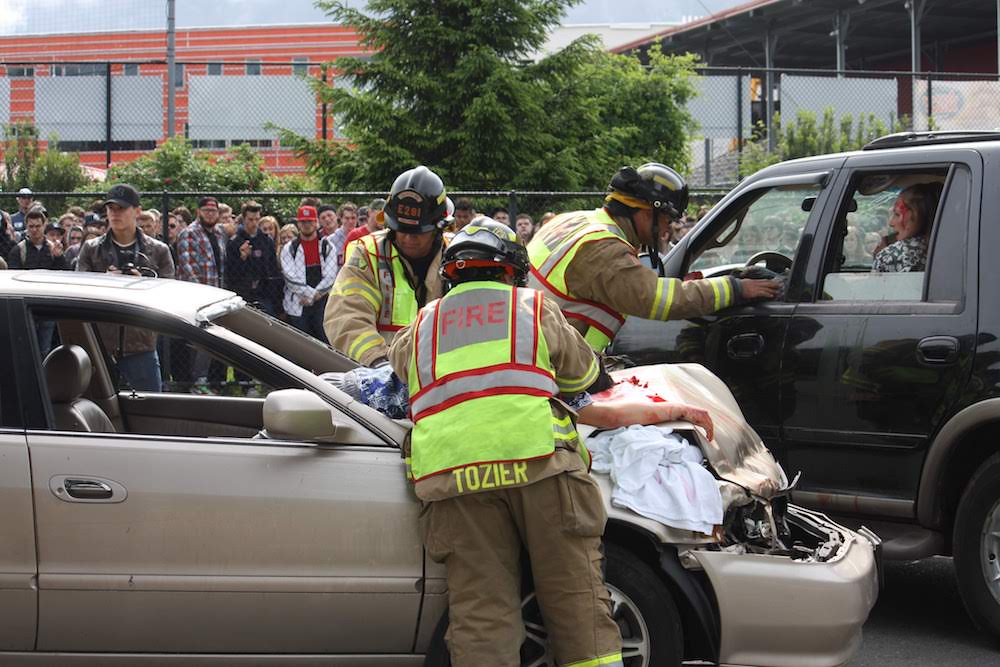 According to the Snoqualmie Fire Department, the scene is designed to be as close to accurate as possible, with the safety of student actors and fire personnel always kept in mind. The cars were donated by Triple J towing, with vehicle damage done beforehand. All glass was also removed, making the cars clean safe for students. A safe word was also agreed on before starting – just in case students felt uncomfortable.