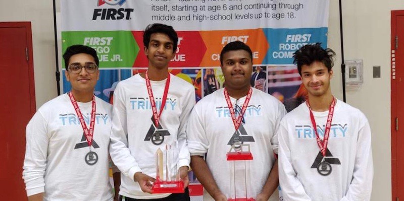 Comprised of Mount Si High School juniors Acchindra Thev, Hari Rathnam and Manjesh Puram, and sophomore Zain Khaki, Team Trinity took home the Winning Alliance Captain Award, the Think Award, and the Inspire Award. The Think Award is given to the team that best reflects their ideas, season and journey through their engineering notebook, and the Inspire Award celebrates the pinnacle of FIRST Tech Challenge (FTC) achievement.