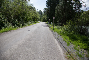 Over on Fish Hatchery Road, about 180 feet on the river side of the road developed small failures along the southeast shoulder due to river scour and storms. A section of the shoulder also dropped about six feet, leaving a near vertical cut along the south edge of the road.