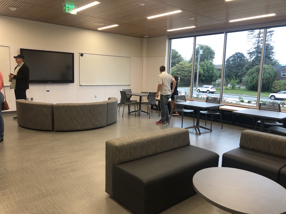 The new media center is open and bright. And the views, the natural daylight. Let’s just say for all the lack of daylight in the old building, the new building makes up for in spades. The building brings in Snoqualmie Valley natural beauty seemingly where ever you look. Windows are EVERYWHERE.