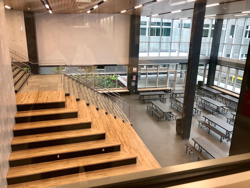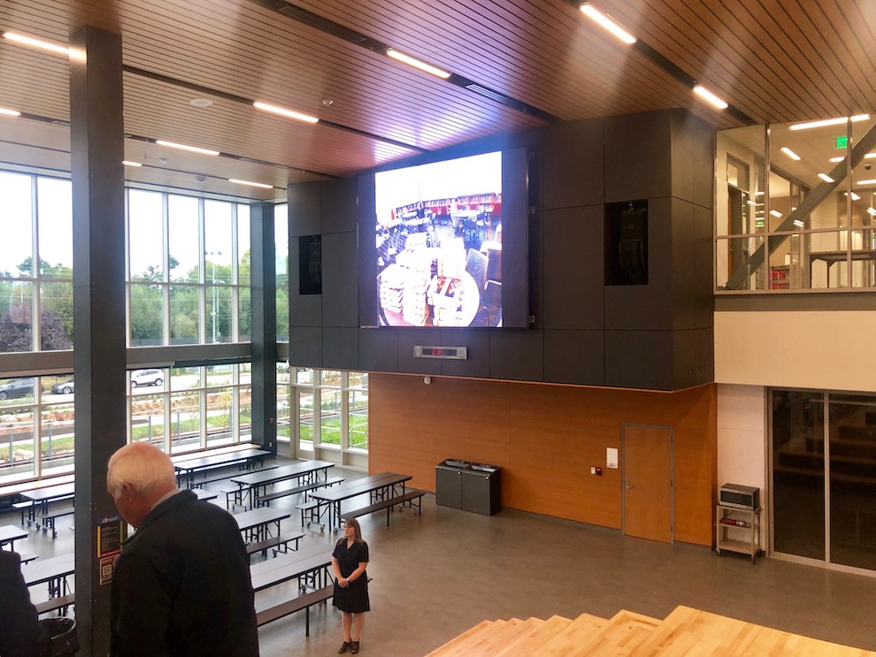 Technology is everywhere, much of it unseen. Each room has large, interactive (think touchscreen) monitors where chalkboards might have once hung. Common areas have what feel like ‘jumbotrons.’ HVAC systems are state of the art, designed to use the least amount of energy possible.