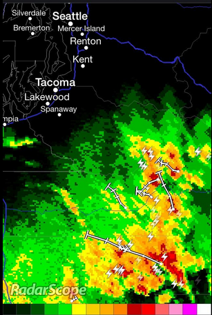 But local weather forecasters say that has changed as the clouds cleared and the temperatures jumped up.  In Seattle it went from 71 to 81 degrees in one hour Tuesday afternoon, triggering a fairly rapid formation for thunderstorms in southern Washington – ones that were heading north.