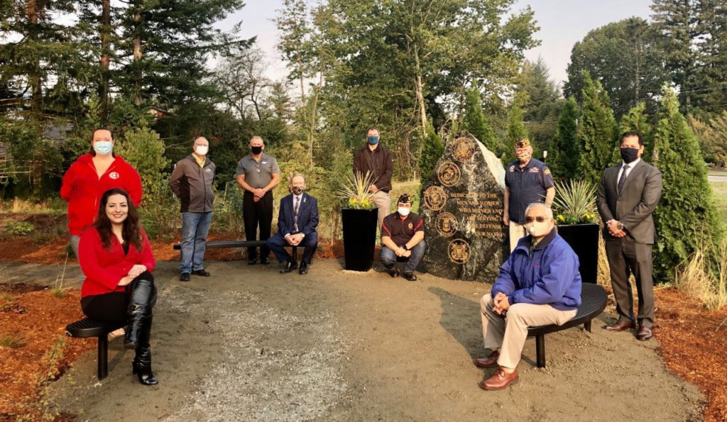 On Thursday morning, October 1st, in a very small outdoor ceremony, the City of North Bend, along with representatives of the Veterans of Foreign Wars (VFW), the American Legion, the Snoqualmie Tribe and the Snoqualmie Casino, unveiled and dedicated a special Veterans Monument Stone in the new City Hall Veterans Memorial Garden.
