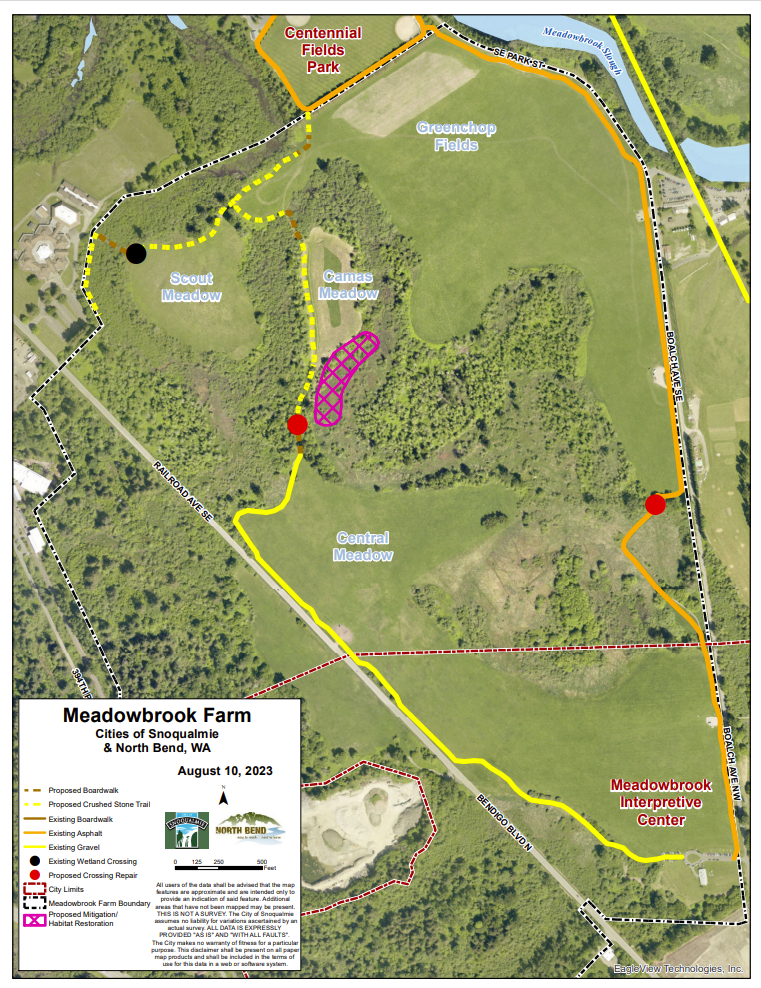 The Cities of North Bend and Snoqualmie are working together with the Si View Metropolitan Park District (SVMPD) and the Meadowbrook Farm Preservation Association (MFPA) to create more walking trails at Meadowbrook Prairie.