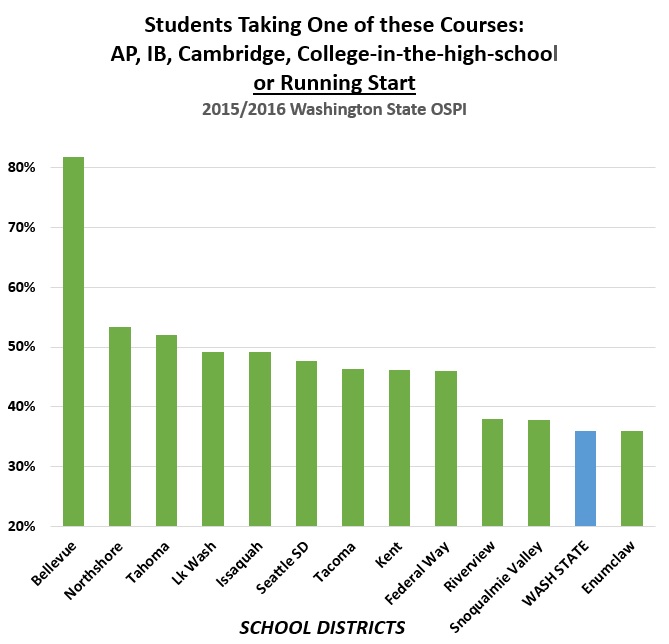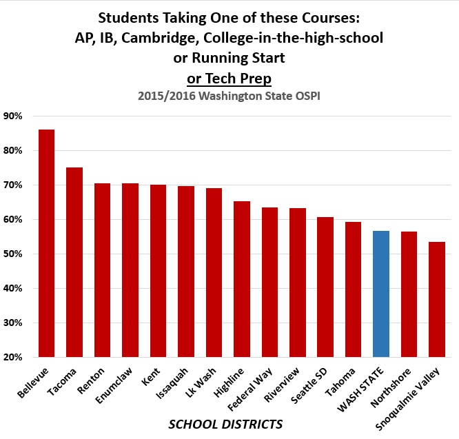 Washington state school districts are under local control. It’s why each district takes a different approach to success measurements like AP and other dual credit courses. Schools are for the community and shaped by community values. When and if community members identify things they feel need to be changed, they are encouraged to contact district administrators and school board members who represent them.