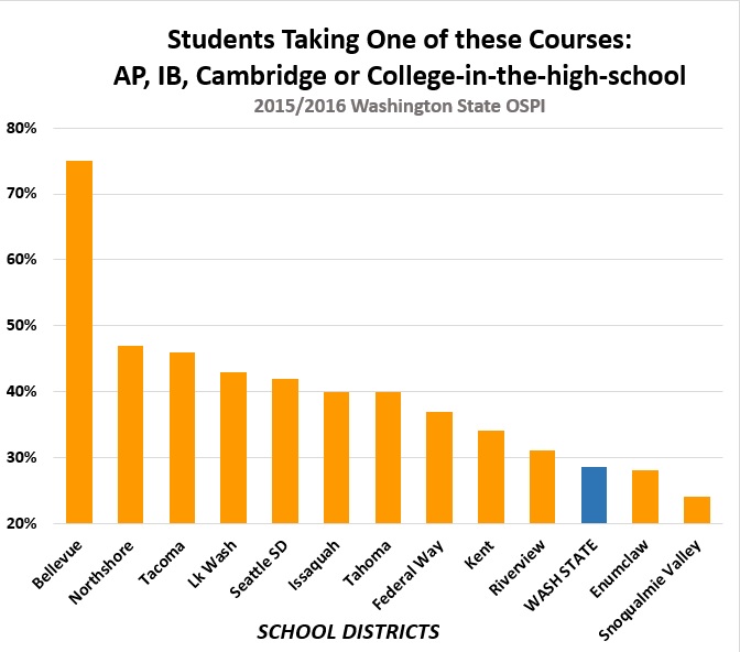 Last year Rogers High School, with about 350 fewer students than Mount Si, had 528 kids in an AP course. Mount Si had 466.