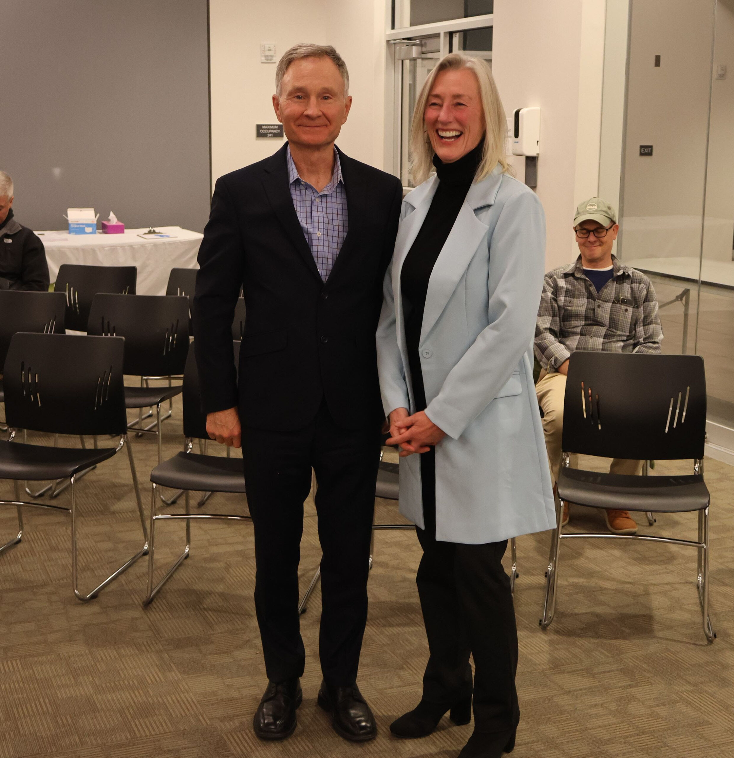 Interim City Administrator Bob Larson stands alongside Mayor Mary Miller at the December 3, 2024 City Council meeting.