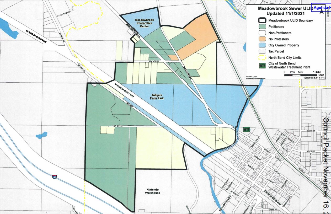 According to the City of North Bend, in 2020, property owners in the western portion of the City, Meadowbrook, where sewer is currently unavailable, petitioned the city to create a Utility Local Improvement District to extend sewer to this area.