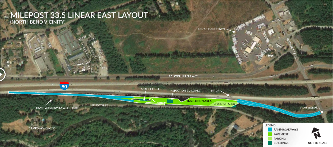 IF the weigh station is moved to North Bend, WSDOT has said parking spaces would be reduced to 15. Originally they had considered 70 and 35 stalls.