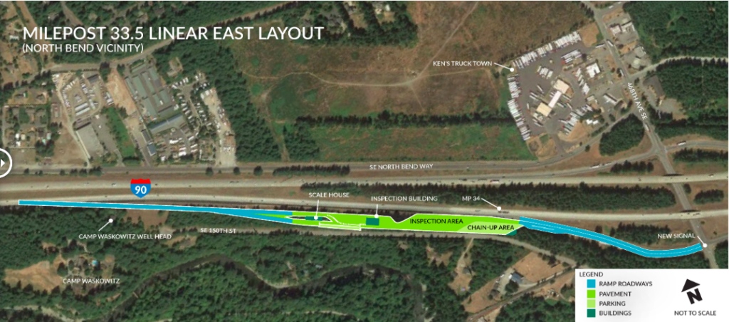 IF the weigh station is moved to North Bend, WSDOT has said parking spaces would be reduced to 15. Originally they had considered 70 and 35 stalls.