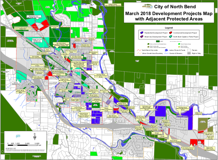 It may be years before the final product – Post-growth-North-Bend  – is realized, but according to the city council, they are working to manage growth. They rezoned density levels; changed cottage housing development standards; adopted a policy to not accept developer-initiated annexation of UGA territory until traffic and infrastructure are better addressed; adopted new street standards and purchased some land for parks.