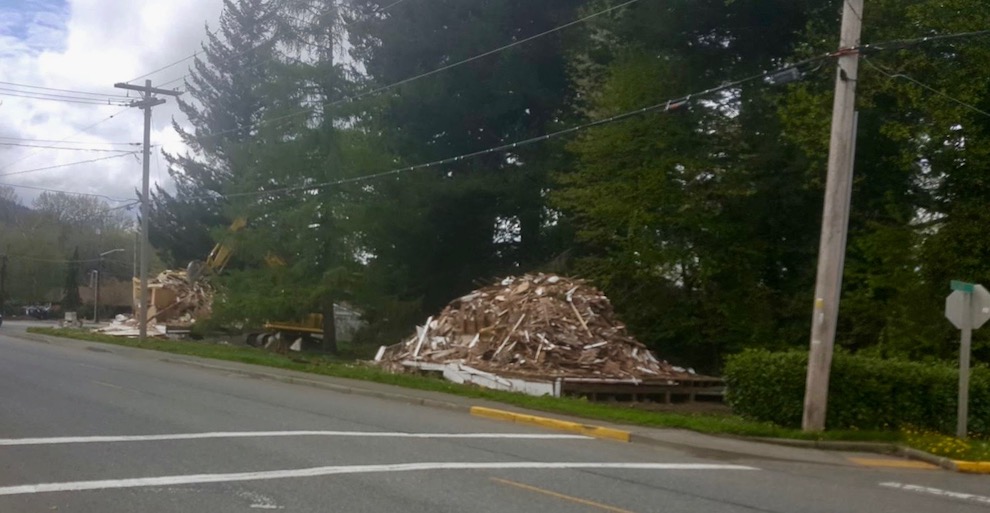 On Wednesday, April 17, 2019 two homes near the corner of E. Park Street and Ballarat Ave in downtown North Bend were torn down, drawing the attention of many residents.