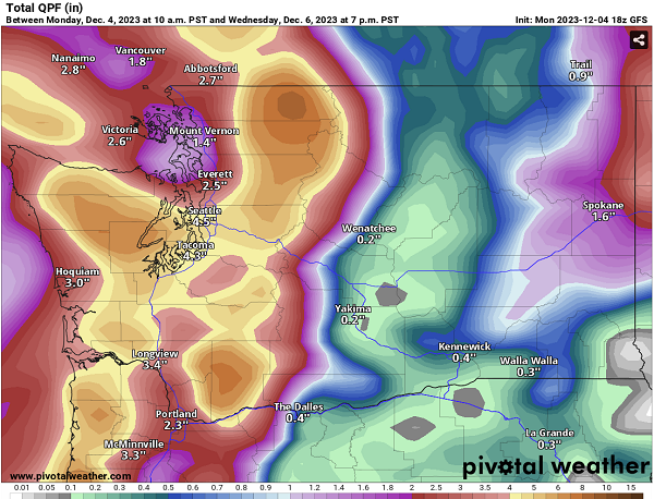 We have a classic Pineapple express aimed right at us. We can expect 3 to 4 inches of rain in the lowlands and up to 9 inches in the mountain passes by Wednesday.
