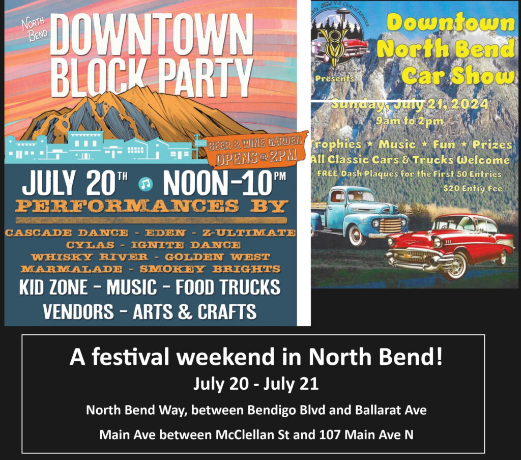 For more information about the Downtown Block Party, including a schedule of events, visit North Bend Block Party.