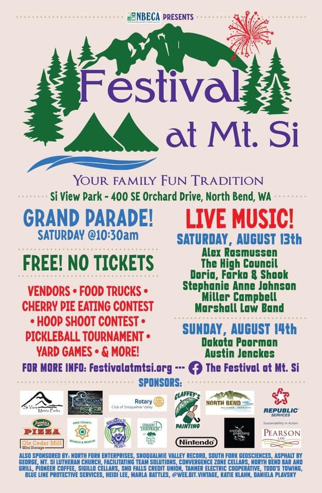 The annual historic Festival at Mt. Si is returning to North Bend after a two-year hiatus on Saturday, August 13th and Sunday, August 14th.