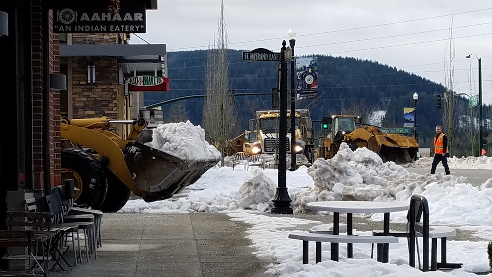 It’s been a LONG couple of weeks for the City of Snoqualmie, especially the Public Works Department. Cold weather and snow first descended on the Valley on Super Bowl Sunday, February 3rd and didn’t let up until the last – and historic- storm left its mark overnight February 11th.