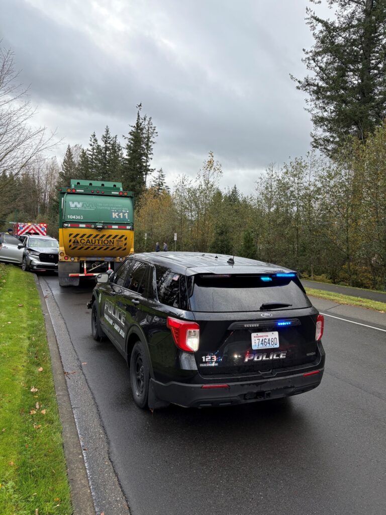 Officers responded to a collision involving a driver who suffered from a medical condition, drove the wrong way on Snoqualmie Parkway, and collided with a garbage truck. The driver was transported to the hospital.