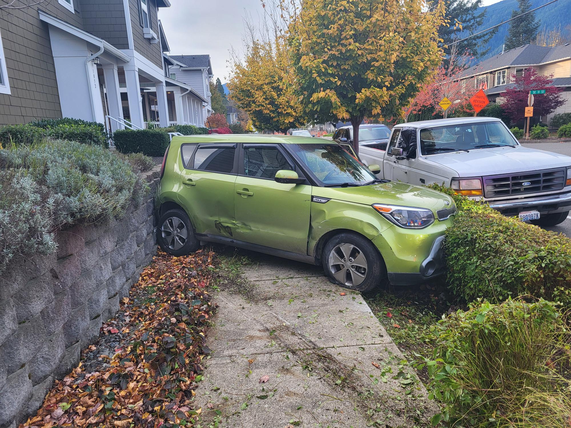 Officers responded to a two-vehicle collision in a Snoqualmie neighborhood. The at-fault driver struck a legally parked, unoccupied vehicle and was cited for driving without a valid operator’s license, negligent driving, and driving without insurance.