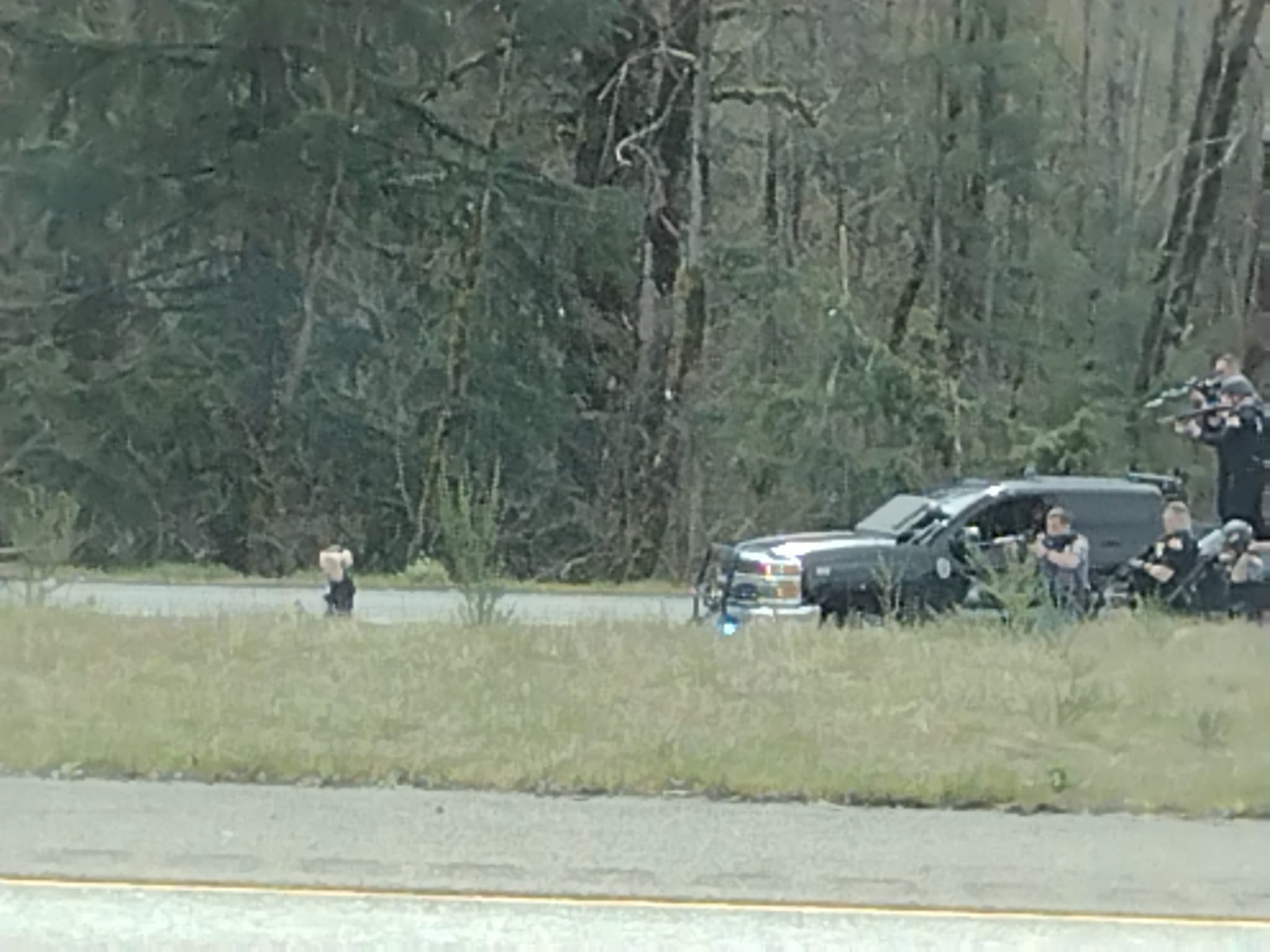 Washington State Troopers along with other agencies responded and were able to take the subject into custody with no injuries.
