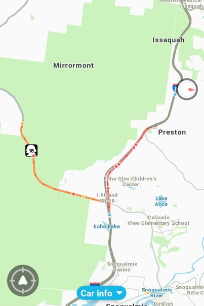 The off-ramp from I-90 westbound to SR 18 (MP 26) was closed during the incident and during the investigation snarling traffic from SR-18 to Preston. Story will be updated when the incident is cleared